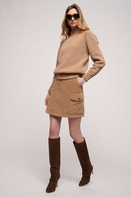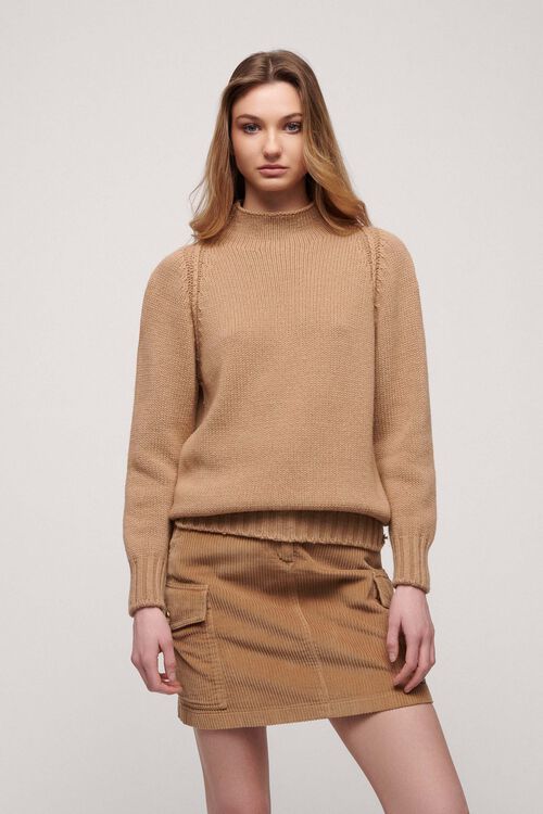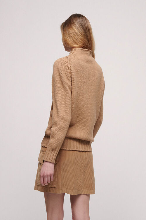 Pulover cu guler inalt, din lana si casmir, cu terminatii cu model