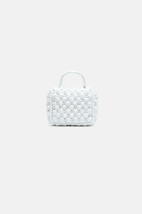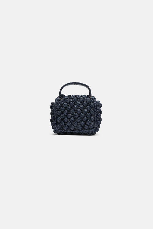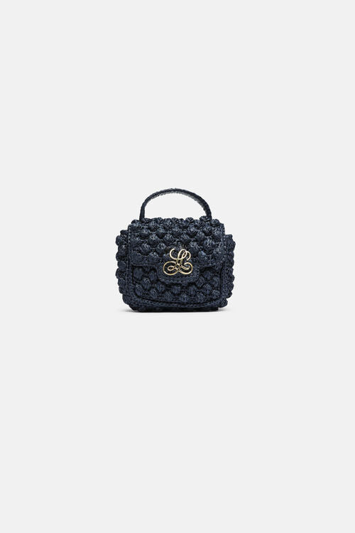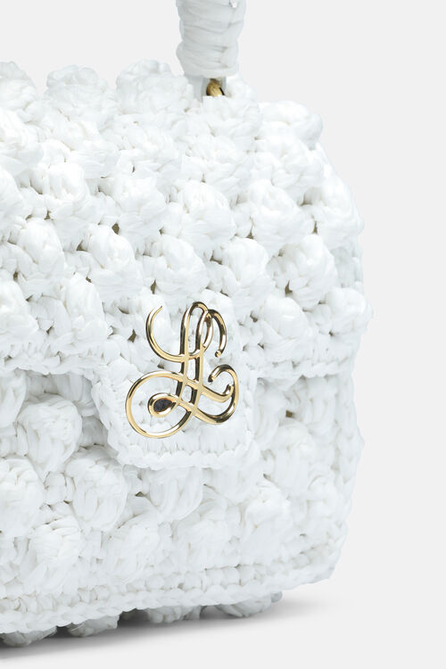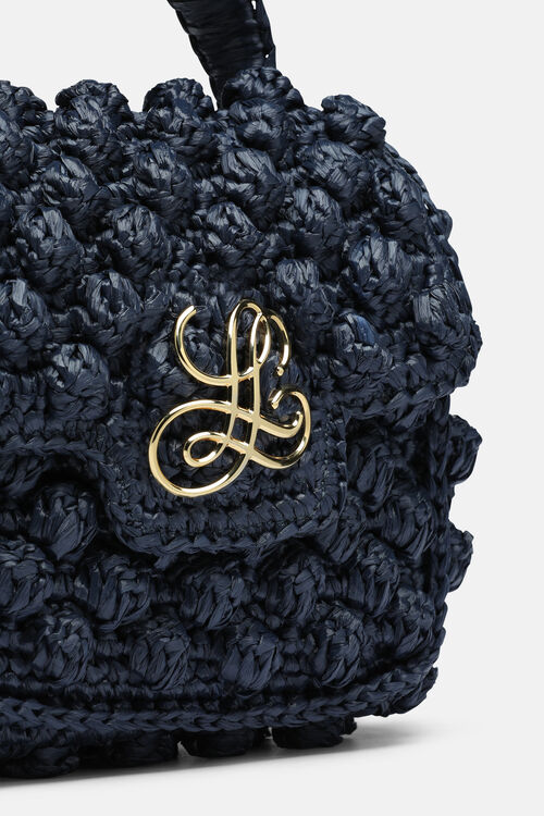 Geanta din rafie impletita manual, cu clapeta. Clapeta se inchide cu o capsa magnetica. Are un logo metalic auriu "LS" pe partea din fata si o placuta metalica aurie la interior. Fabricat in Italia.